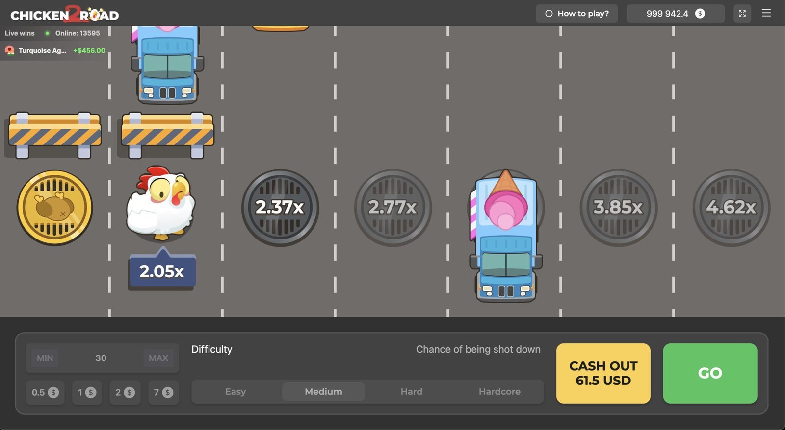 - Beobachten Sie, wie das Huhn vorankommt, und entscheiden Sie, wann der beste Zeitpunkt ist, um Ihren Gewinn zu kassieren